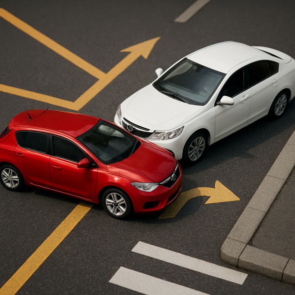 마침 저희 차량이 이미 2차선상에 진입해 진행하고 있었던 터라, 2차선 횡단보도 근처에서 두 차량이 접촉하는 사고가 발생했습니다.