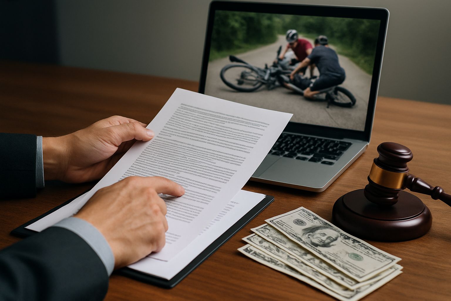 주말 공원 산책로에서 자전거 전용로를 주행 중 앞서가던 자전거가 급정지하여 뒤에서 달리던 이용자님이 추돌하였고, 이후 연조직 손상 진단을 받은 상황입니다.