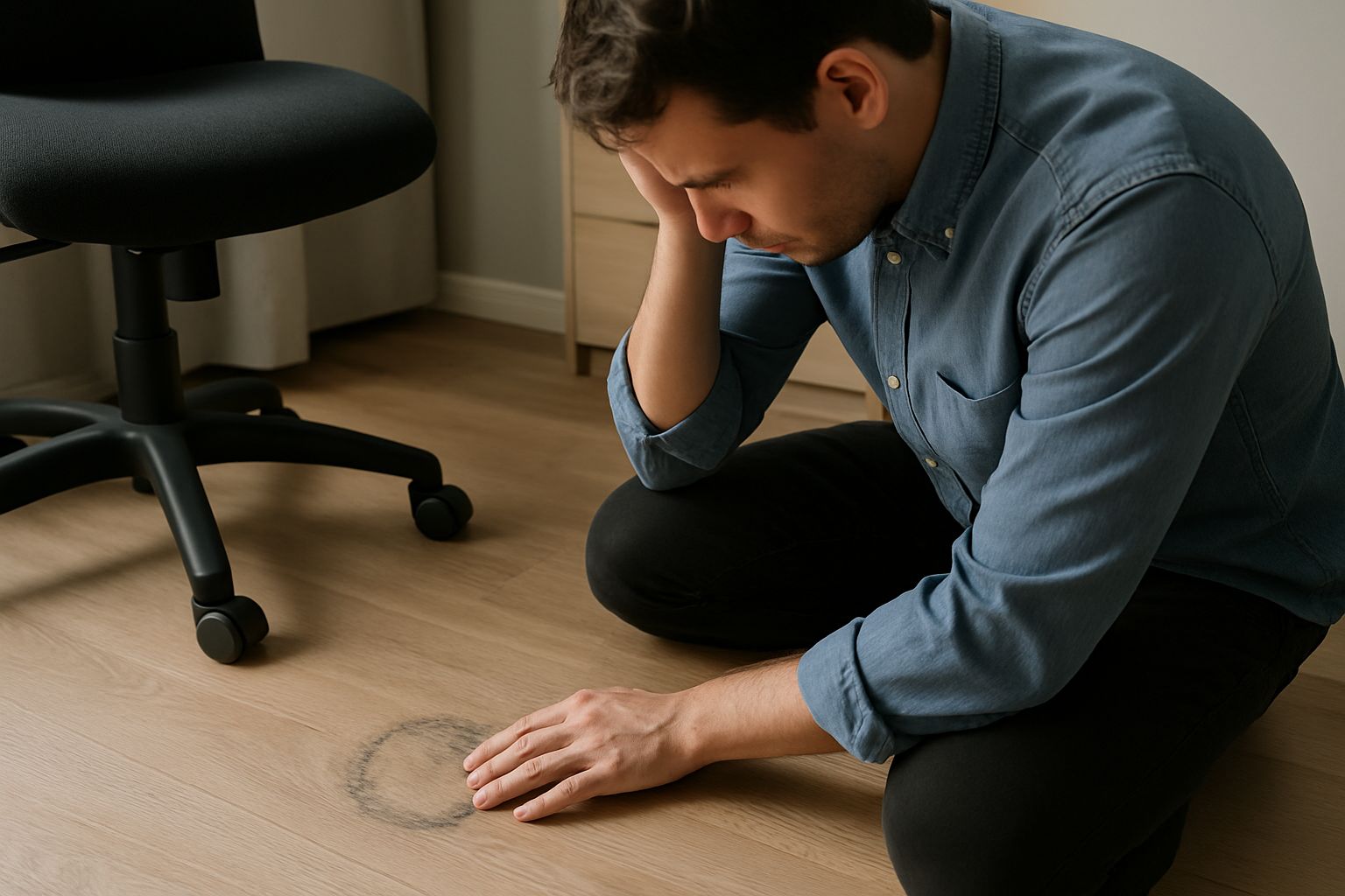 원룸에서 거주 중에 바퀴 달린 책상의자를 별도의 매트 없이 사용해왔더니, 방 한쪽(약 4평) 장판에 바퀴 자국이 남았습니다.