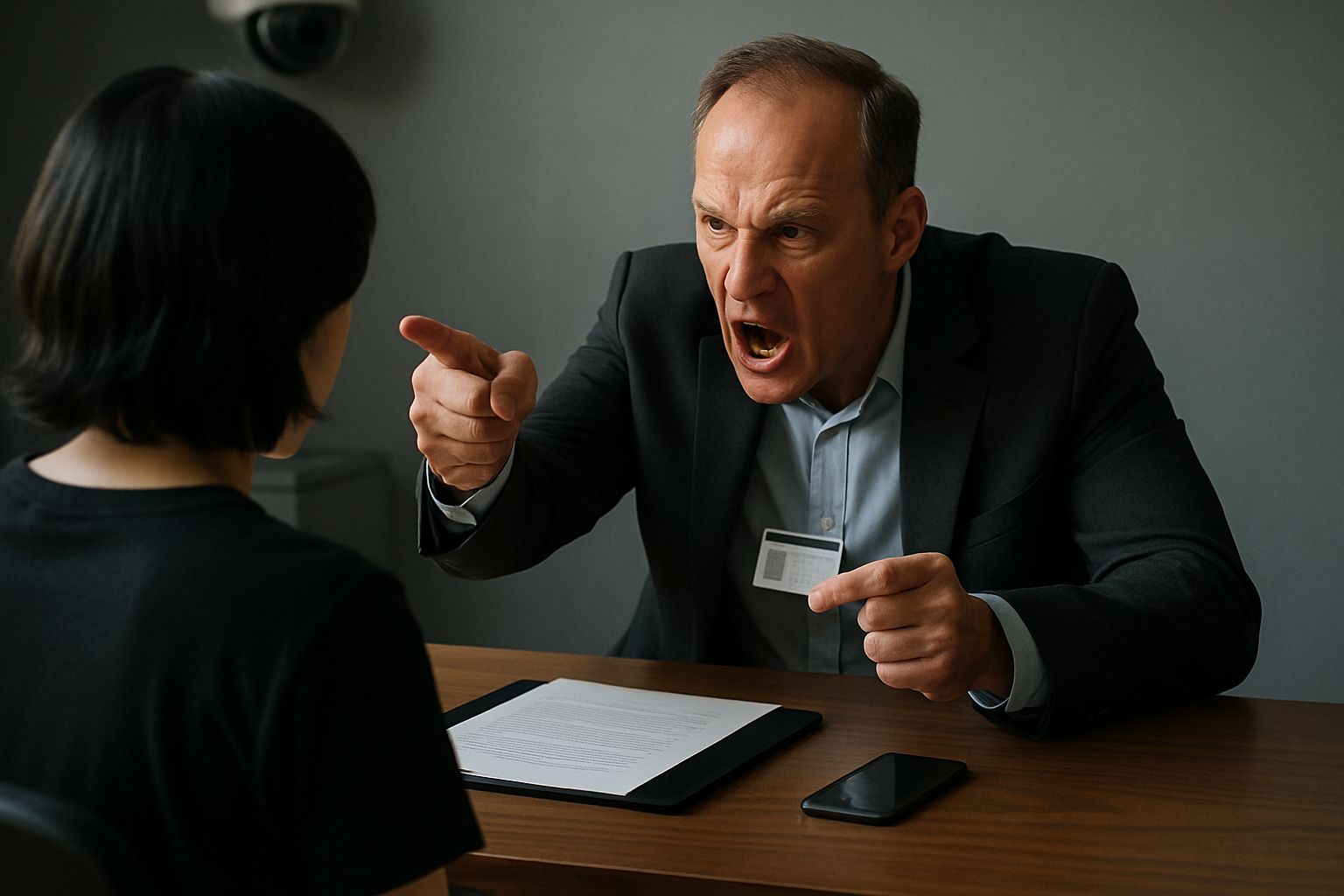 제가 신분증을 내밀지 않았더니, 해당 남성이 갑자기 언성을 높이며 가게 한쪽 벽으로 저를 몰아세웠고, 팔과 손을 번갈아 휘저으면서 위협적인 태도를 보였습니다.