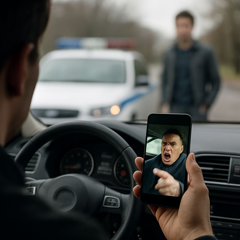 퇴근길 신호 대기 중 경적 문제로 언쟁이 시작되었고, 이후 상대 운전자가 인도 옆 주차 공간에서 차량 문을 방해하며, 반복적으로 모욕적 언사를 사용한 상황입니다. 친구가 전 과정을 핸드폰으로 녹화하였고, 현장에 목격자도 있었습니다.