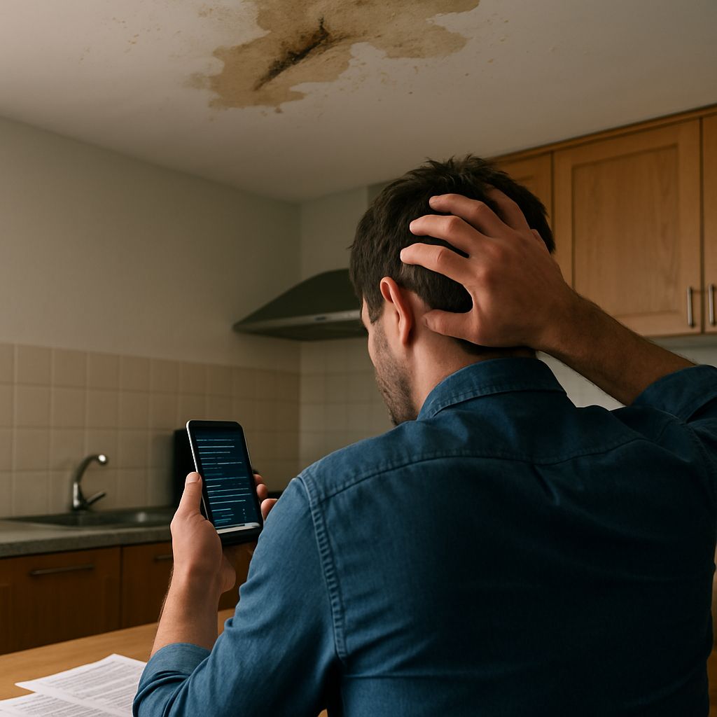 지난주에 관리사무소 직원에게 연락을 받고, 26층 주방 천장에 누수 흔적이 심하게 생겼다는 사실을 처음 알게 되었습니다.