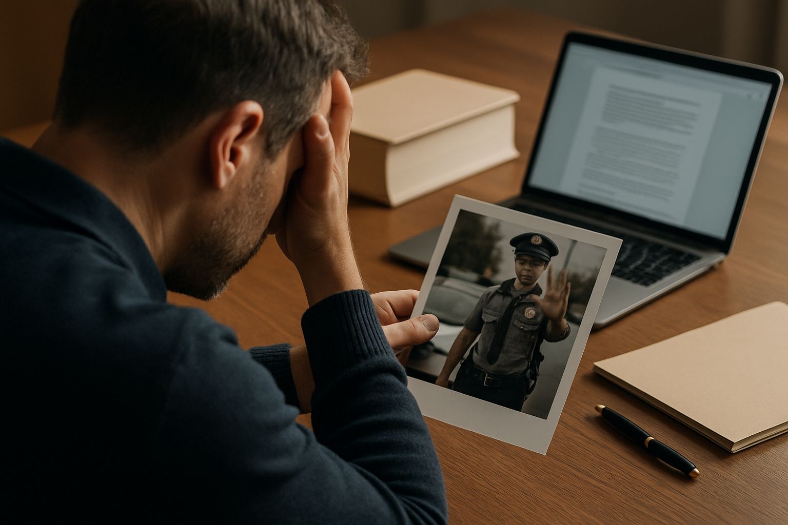 출근길에 신호위반 단속에 걸려 교통경찰에게 현장에서 조사를 받았습니다.